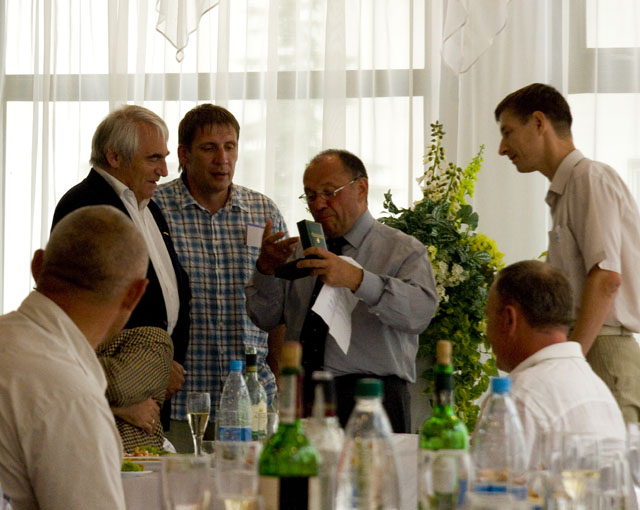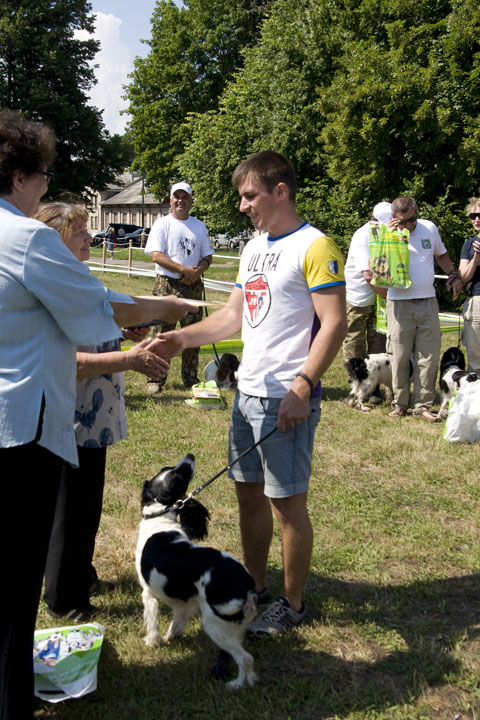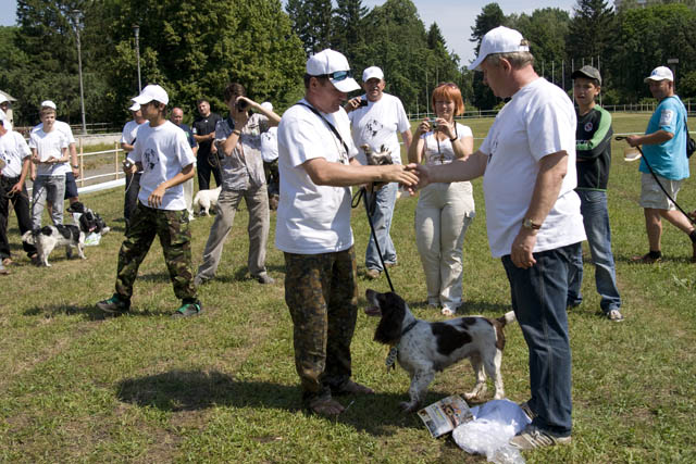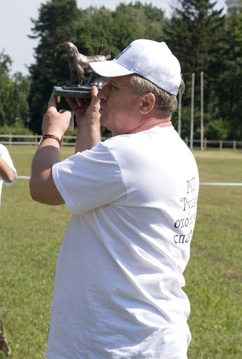 Н.Е. Бобров награждает лучшую полевую собаку по