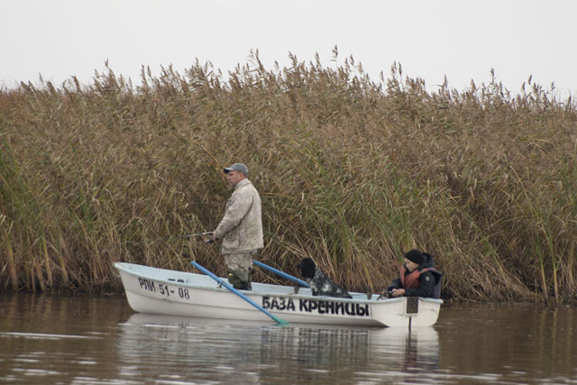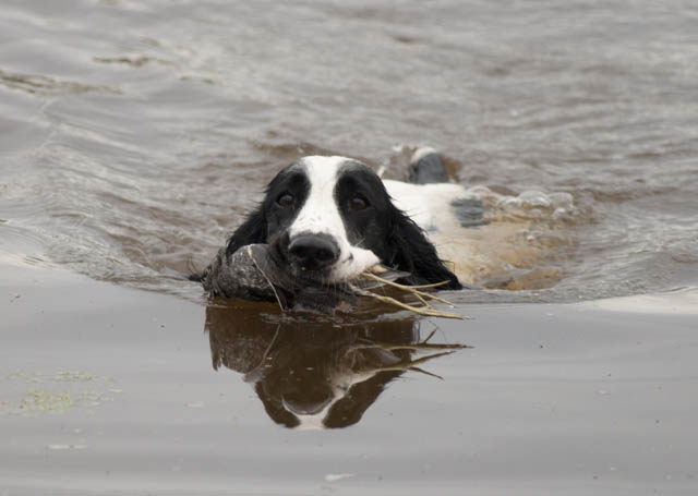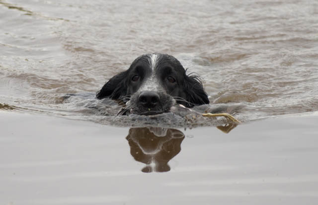 Мимо проплывает лодка. В лодке спаниель - как выясняется наш - от